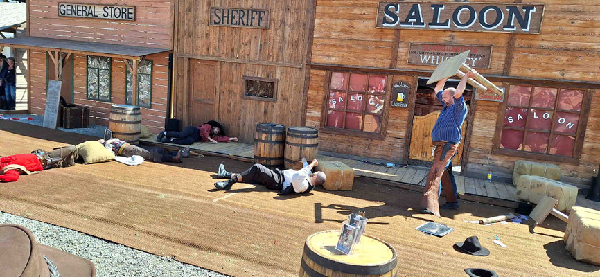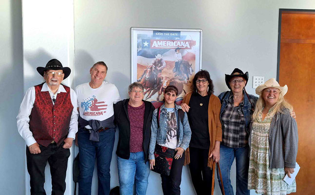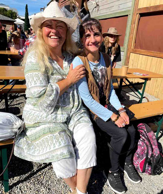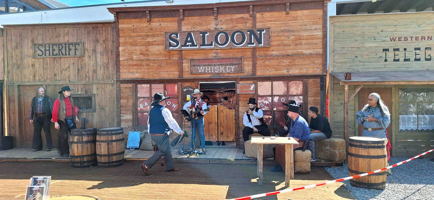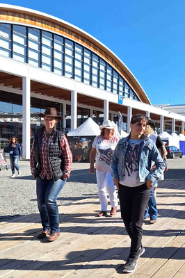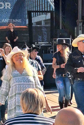 Diesmal waren wir eine kleine Gruppe: Annemarie, Martin und Karin, Janine und ihre Mutter Ruth, Gerda und ich. Die riesigen Messehallen waren voll mit Westernwear - was das Herz nur begehrt - Boots, Hosen, Blusen, Hemden, Hüte usw. Auch für Pferde gab es alles, was zum Reiten, Kutschenfahren, Pferdepflege, Gesundheit und Futter für die Tiere, Kleidung für die Reiter etc. benötigt wird. In einigen Hallen konnte man Vorführungen mit Pferden sehen. Im "Yellowstone Saloon" war alles toll eingerichtet, aber nix los - dafür im Außenbereich bei schönstem Wetter. Eine große Tanzfläche für Linedancer, die immer voll war. Eine Linedance-Teacherin gab Workshops und Annemarie, Janine und Martin haben fleißig mitgemacht. Ein weiterer Höhepunkt war eine lustige Stunt - Show und natürlich durfte auch Live-Musik nicht fehlen. Countrybands aus Nashville verwöhnten uns mit tollen Liedern.